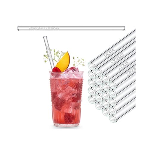 Buy glass strawsYou can have our glass straws engraved individually. Let your creativity run wild: Whether with names, symbols, or sayings.