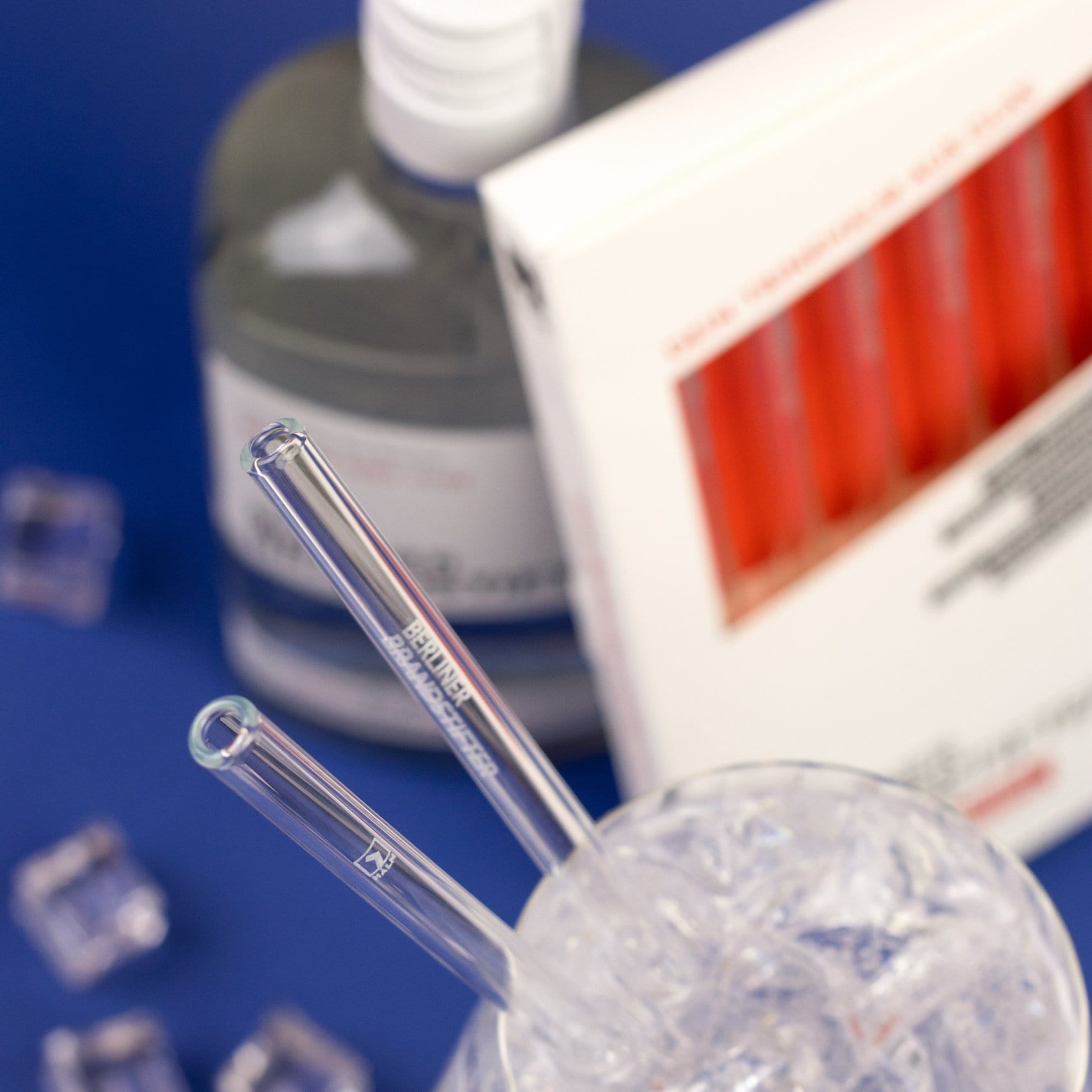 Berliner Brandstifter HALM glass drinking Glass Straws with logo engraving - set of 6